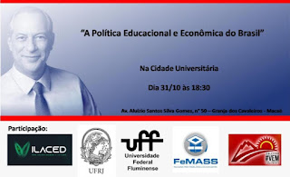 Foi confirmado para o dia 31/10,às 18h30 na Cidade Universitária,  a palestra com o advogado e ex-Ministro, Ciro Gomes(PDT). Com tema ” A política educacional e econômica do Brasil” , o evento será gratuito.
