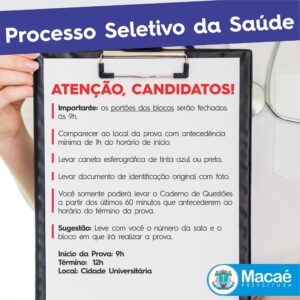 O PSS é organizado pela Secretaria Adjunta de Recursos Humanos. Todas as informações e publicações pertinentes ao processo seletivo simplificado são disponibilizadas nos canais oficiais da Prefeitura de Macaé.