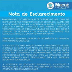 NOTA DE ESCLARECIMENTO EDUCAÇÃO MACAÉ